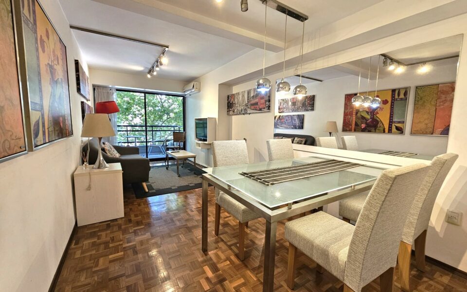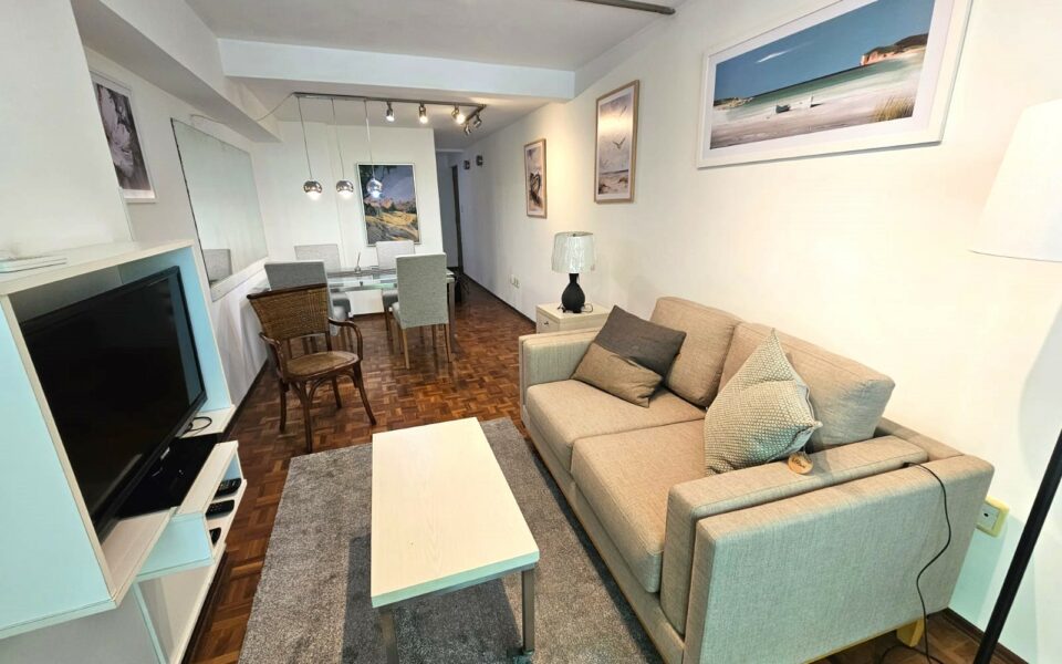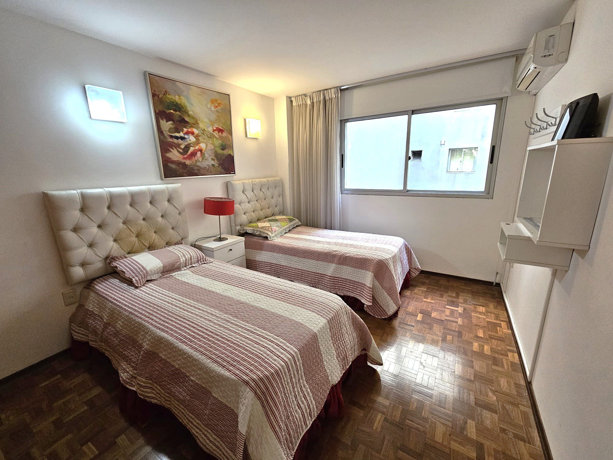 Hermoso apartamento completamente amoblado de 2 dormitorios, 1 baño completo, 1 baño social, amplio living comedor con terraza. Cocina definida, terraza lavadero. Piso intermedio con muy buena vista y luminosidad. Aire acondicionado en todos los ambientes. 1 lugar de Garage